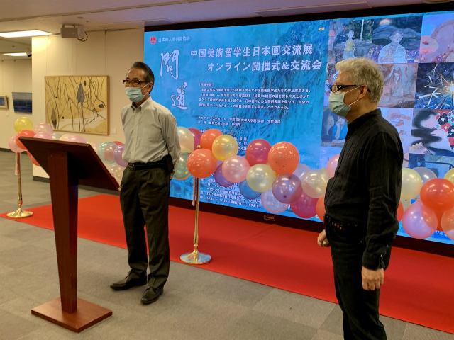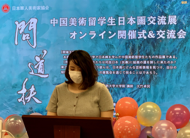 在活动现场,主办方、日本华人美术家协会会长卓民发言。中国驻日本大使馆公使衔文化参赞石永菁发表视频致辞;日中文化交流协会常务理事中野晓先生致辞。其后,留学生代表、 东京艺术大学大学院保存修复日本画博士郝玉墨代表参展留学生发言。