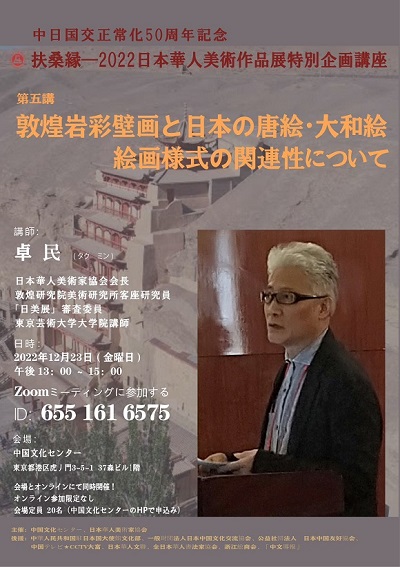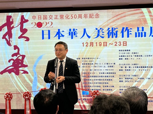 中文导报讯 12月19日, “扶桑缘~2022日本华人美术作品展”在东京拉开帷幕。该展荟萃了众多旅日华人艺术家潜心创作的油画、水彩、水墨、岩彩、莳绘、粉彩画等艺术佳品约几十余件,展现了他们对未来的美好憧憬、对希望的寄托,并冀以此促进中日文化艺术交流。