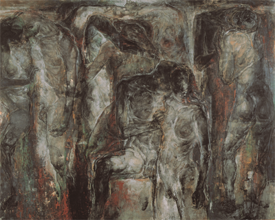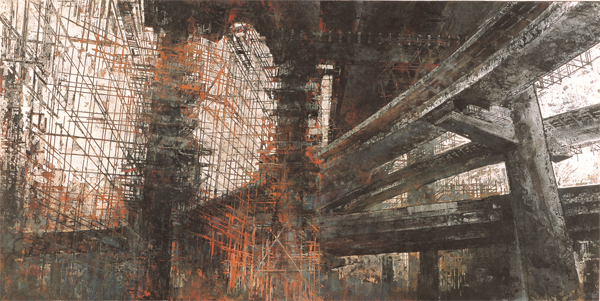 三十年前卓民留学日本,籍此学习日本画的契机,潜心研究佛教美术及中国南北朝、隋·唐的壁画艺术,发现以岩彩材质为媒介、盛行于隋唐的岩彩壁画失传。于是,与友人一起,在中国美术界倡导“岩彩绘画”,引起反响。在持之以恒的敦煌壁画研究中,卓民努力构建中国的岩彩绘画语言体系,著书撰文,举办讲座,竭尽所能。在延续中国美术史的研究中,卓民把五代·北宋的制作型水墨画与元以后的文人笔墨画区别开来,并提出水墨绘画应回归视知觉的造形性、绘画性的本元,认为这是水墨画走向现代的根本和途径。卓民的水墨画创作,在对北宋水墨画的语言形态进行解构、分离的基础上,将其“碎片”化、 “痕迹”化、重新组构,创立了复合制作型的麻纸水墨绘画样式。