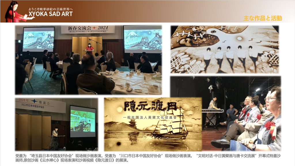 • 多次在“旅日中国留学生总会新年会”上表演沙画