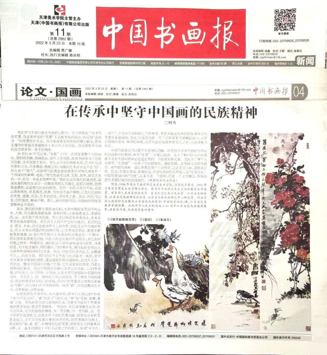 - 《在传承中坚守中国画的民族精神》由《中国书画报》授权《中国学术期刊(光盘版)》编入《中国重要报纸全文数据库》